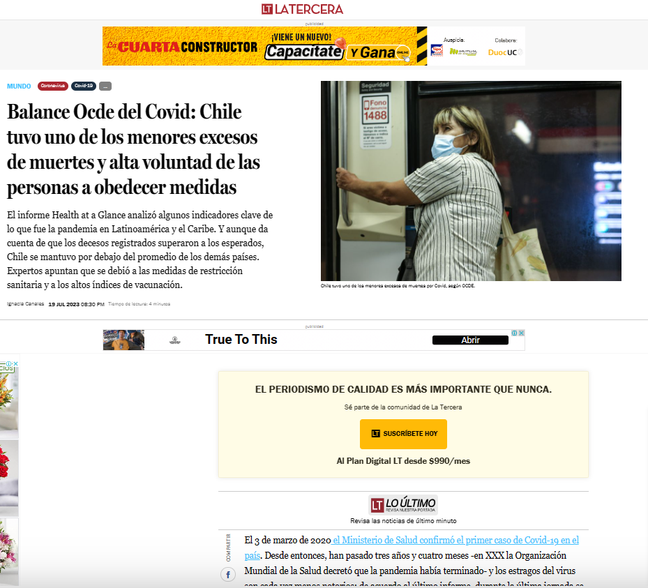 19 julio 23: Según balance OCDE COVID Chile tuvo uno de los menores excesos de fallecidos