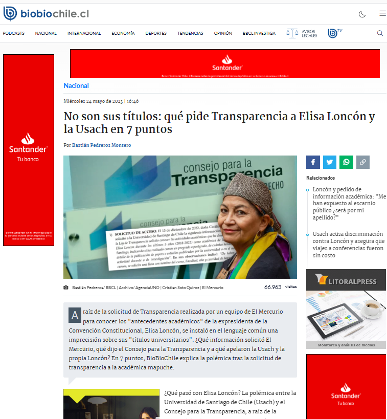 Mucha polémica ha generado la nula intensión de parte de la USACH de entregar antecedentes académicos de Elisa Loncon, lo que se ha sumado a su viaje a Europa y año sabático financiada por la Universidad. Nuevas aristas del caso se podrían abrir si esas actividades pudieron haber sido proselitismo político.